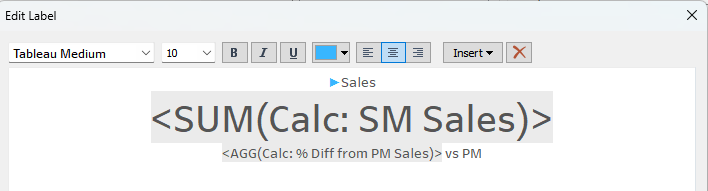 - Add a label (e.g., "Sales"), and adjust the font type and size. For this BAN, I made selected month sales calculation more prominent.