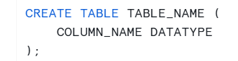 Now you are ready to create the table! The syntax for this is as follows: