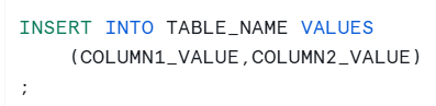 Let's now insert some data into the new table! This can be done using the syntax:
