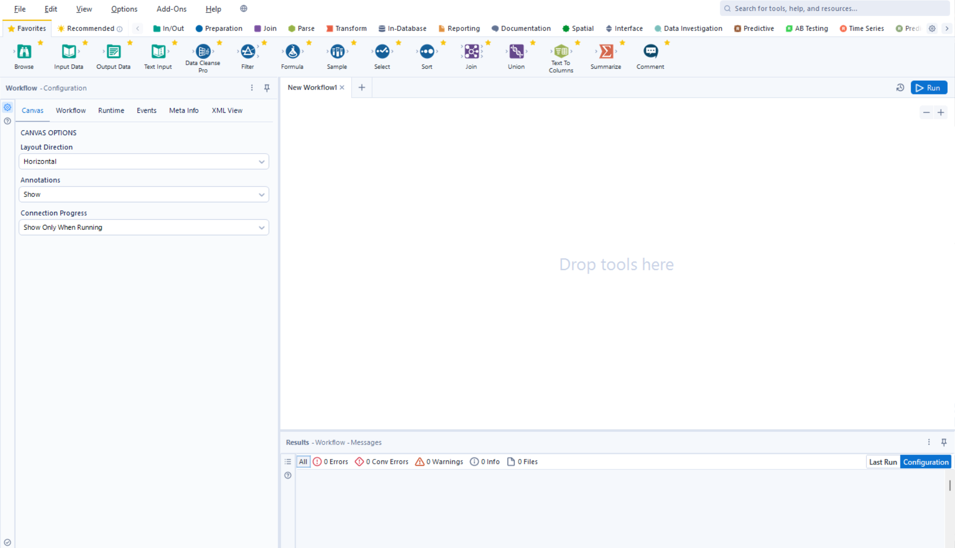 - The Workflow (not pictured): This is the end-to-end process you build within the canvas. You build a workflow by dragging tools onto the canvas and connecting them. Data "flows" from left to right, being transformed at each step.