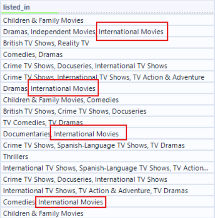 So our first step is to filter only those movies that are categorised as being an international movie.
