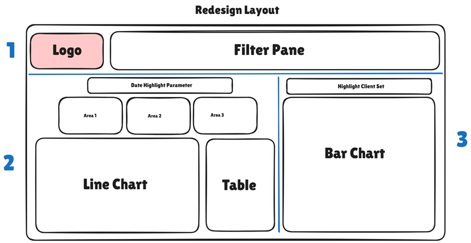 As I did this review, I also thought about how someone would read the dashboard—top to bottom, left to right—and took notes on layout adjustments I could make to improve flow.