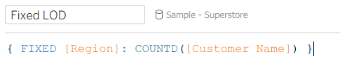This calculation { FIXED [Region]: COUNTD([Customer Name]) } tells Tableau: