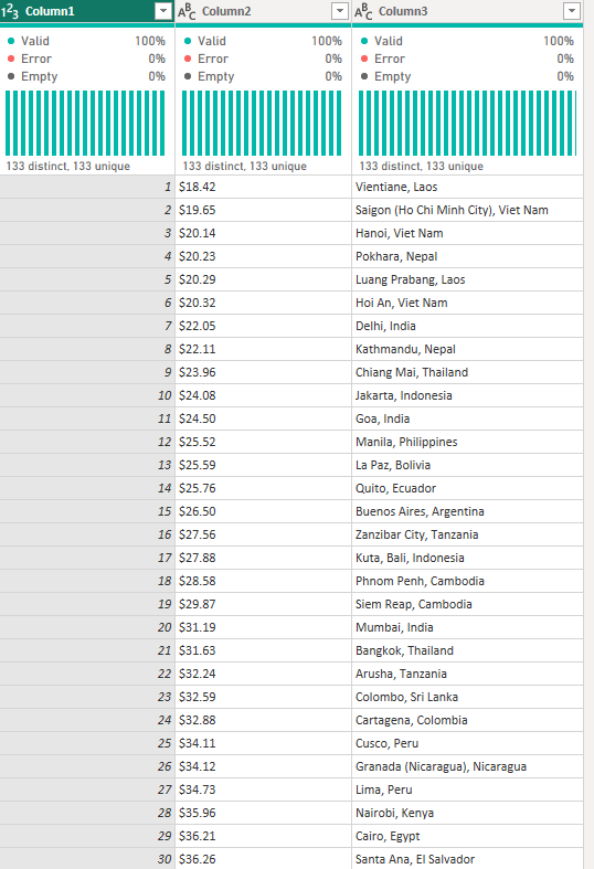 This report converts the Backpacker Travel Index into a structured Power BI Report. Data were acquired and prepared in Alteryx using web-scraping and regex to standardise city, country, and price fields. Version 1 focuses on the core index and city population to enable comparable cost views; subsequent iterations will extend to accommodation and food budgets for broader decision support.