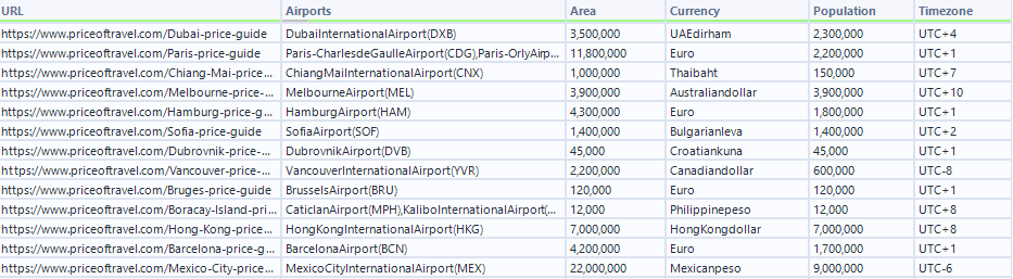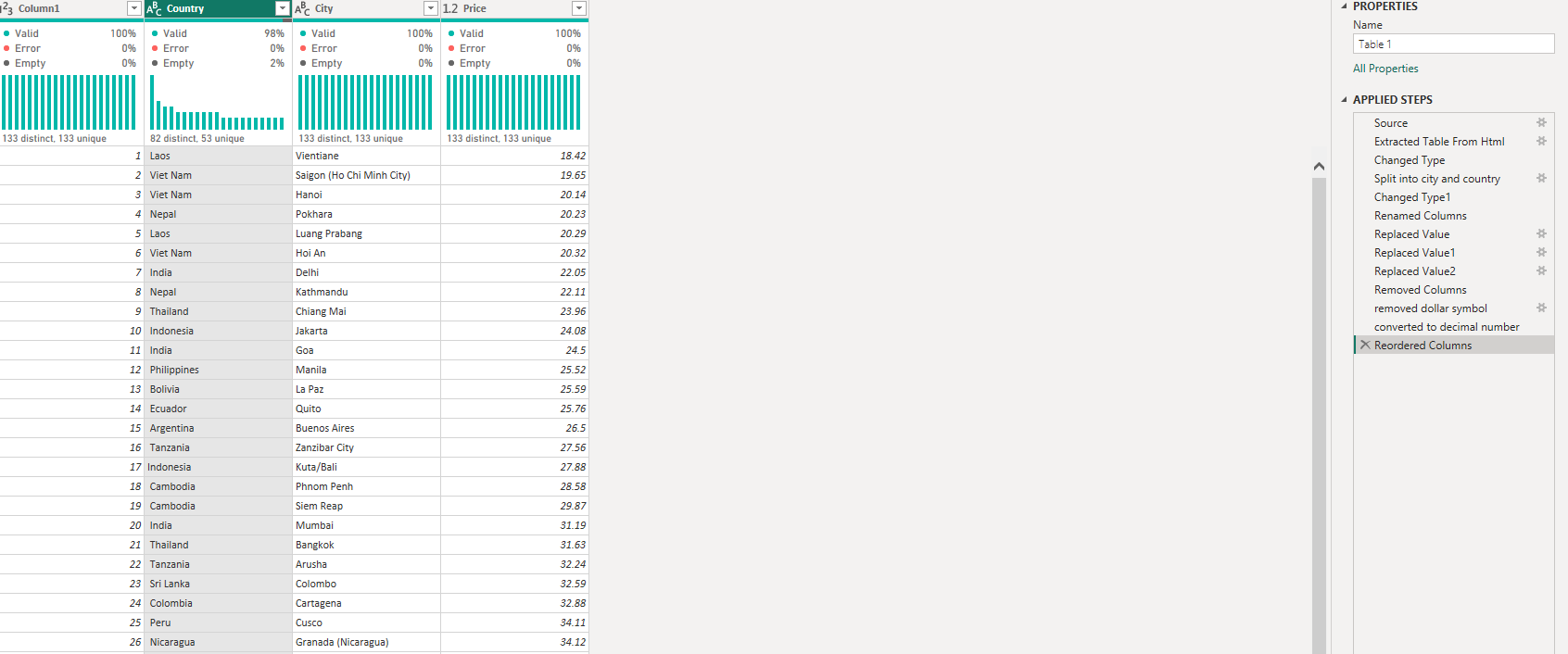 Bringing in the overview price index URL with the relevant countries and cities was the easy part. The blockers came during data preparation, which highlighted that I need more practice with web scraping and regex in Alteryx. I went through a lot of trial and error to both clean the data and transform it so it could be used while dynamically pulling information from different URLs. These steps took longer than I expected, so my final report was simpler , focusing only on the overview price index and the population table for each city.