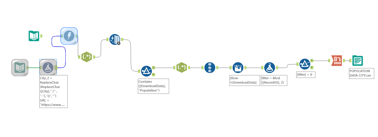 Cleaned the data and then used a filter to create a flow specific for the population table for each city.