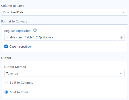 Used download tool to web scrape the data from the URLs and then used reg ex tool select the tables from each page.
